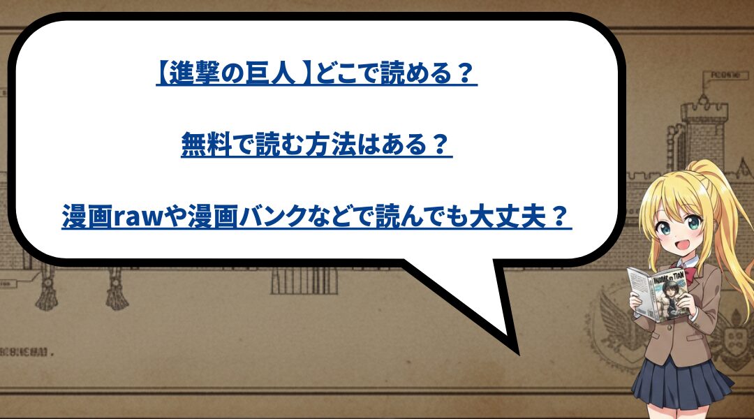 【進撃の巨人 】どこで読める(無料で読む方法はある)?漫画rawや漫画バンクなどで読んでも大丈夫?